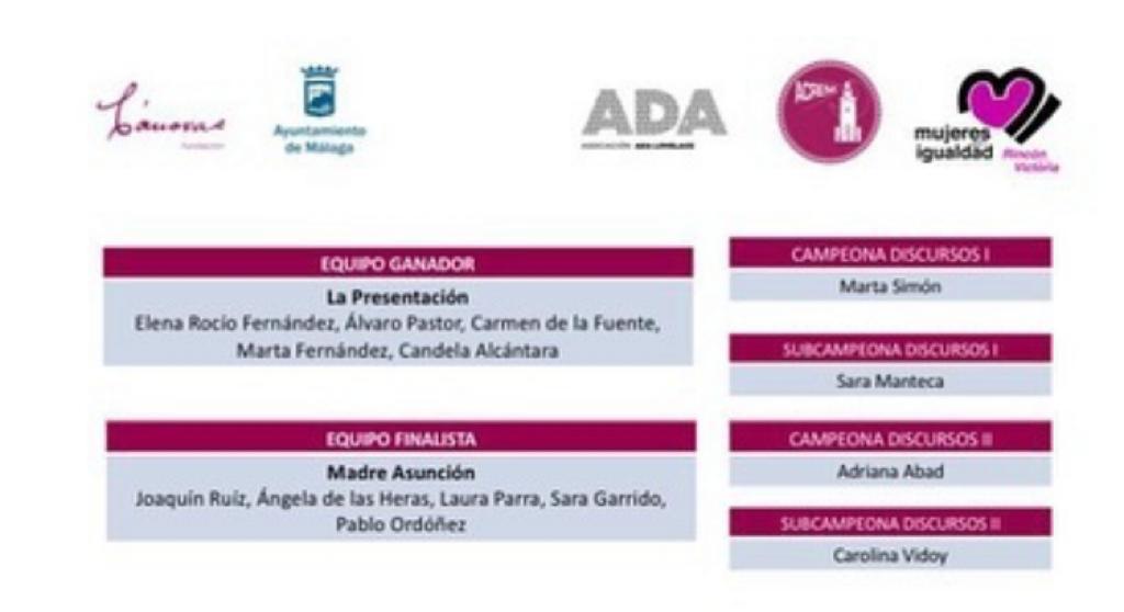 En la categoría de discursos, las ganadoras fueron Marta Simón (primera categoría) y Adriana Abad (segunda categoría).