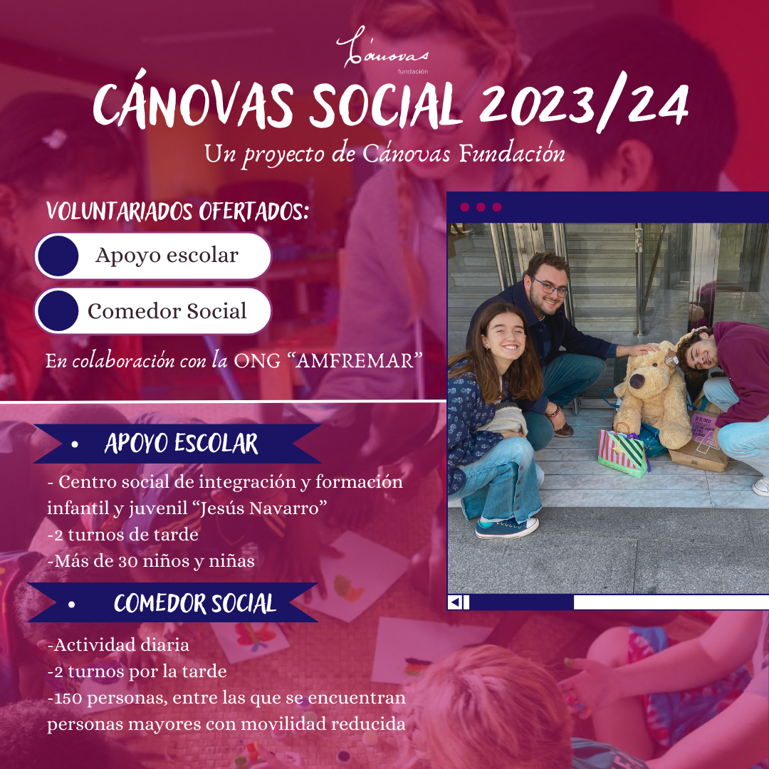 Vuelve Cánovas Social, el proyecto de voluntariado de la Fundación que, como una invitación al compromiso con los más desfavorecidos, contempla los siguientes programas para este curso, en colaboración con la ONG Amfremar: